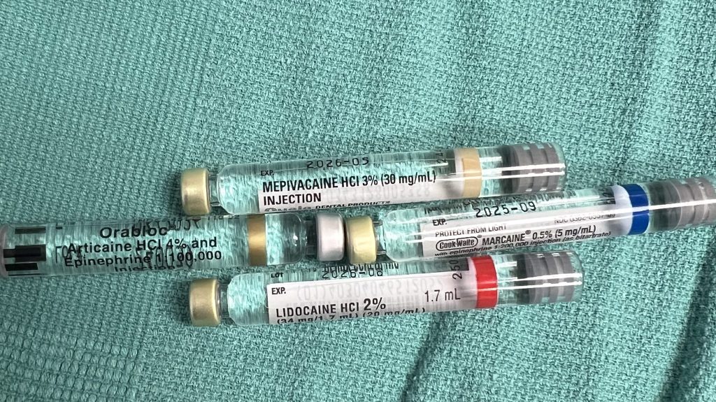 Articaine (common brand name: Septocaine)- comes in a more potent concentration; great for some purposes, riskier for others (look for a future post for details).